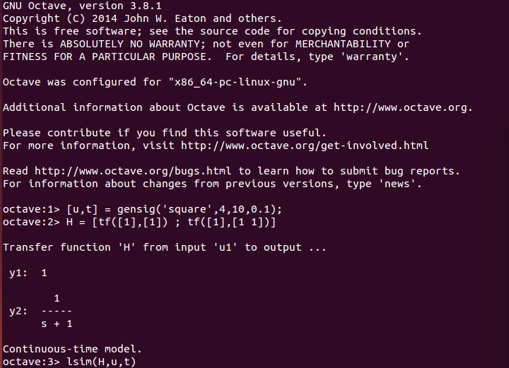 久しぶりにOctaveをさわってみましたが、まだ現在進行形でサポートされていることと(2014, version 3.8.1)、伝達関数(tf)がMatlab互換の方法で使えるようになったこと(Octave Control Systems Toolbox : 以前はOctave独自の方法だった気が・・MatlabではSimulinkでやっていた)がとてもうれしいです。