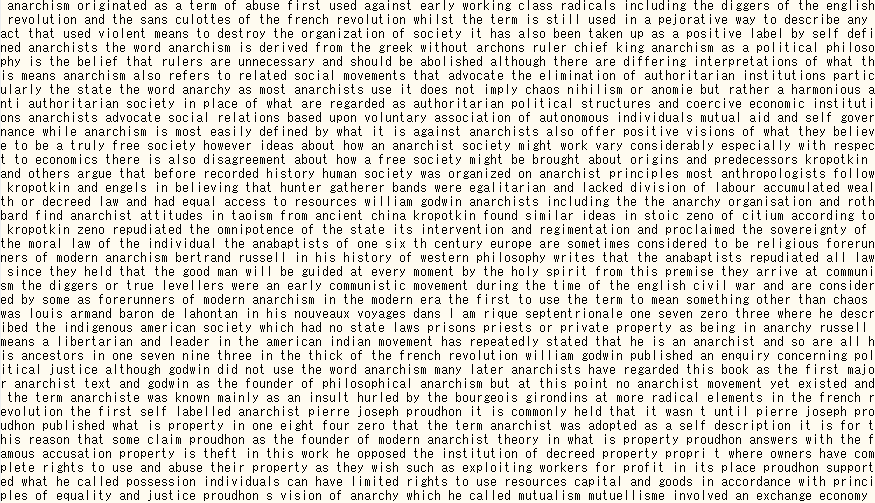 どんなファイルかイメージするために、text8の冒頭部分です。