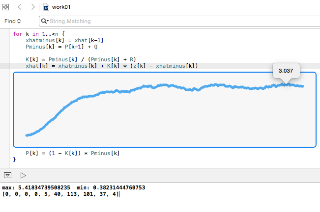 カルマンフィルタという、誤差のある観測データから真の値を推測する手法を、Playgroundでテストしてみました。