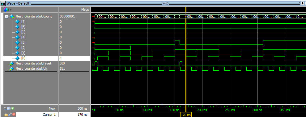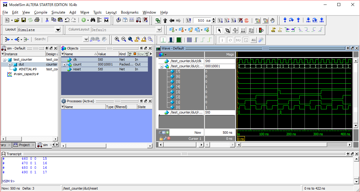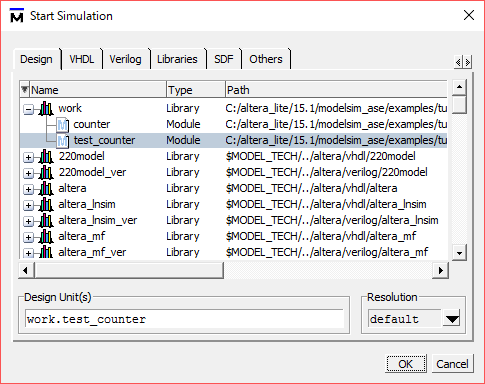 [Simulation]->[Start Simulation]でtest_counterを選択します。