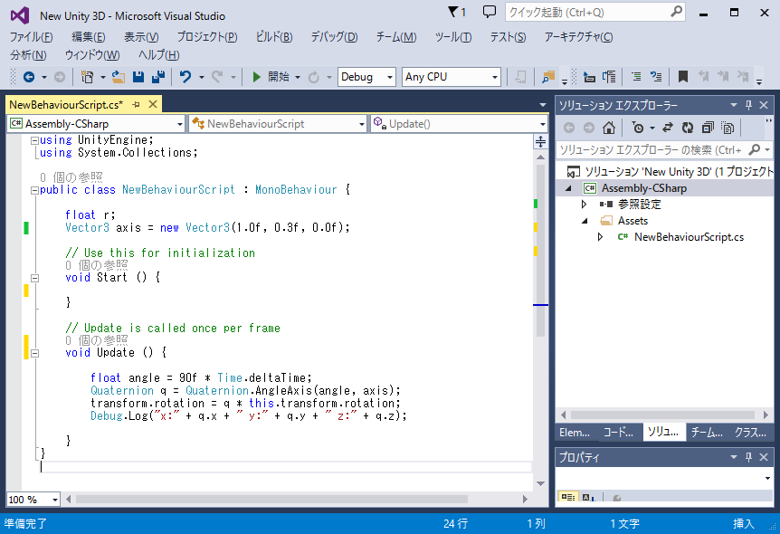 また以前、Unityを試したブログでこのQuaternionがでてくるので、ここでちょっとだけ復習してみました。