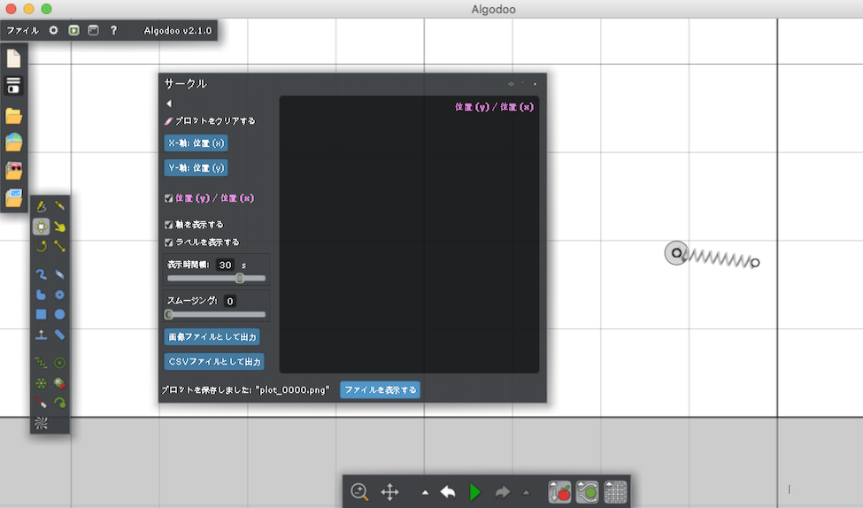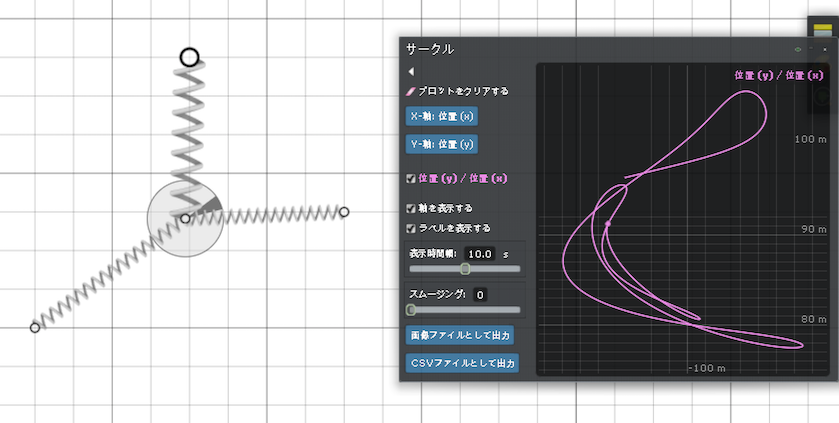 何からやっていいかわからないまま、とにかく使ってみようということで、バネやギアを適当に動かしてその挙動をプロットしてみました。