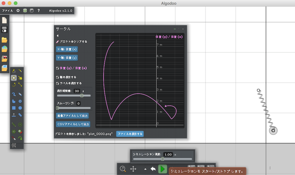 物理演算シミュレーションソフトを調査していてAlgodooというものを知りました。一見お絵かきソフトのようでもありゲームソフトのようにも見えますが、本格的なシミュレーションができます。