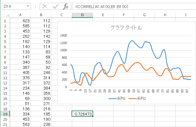 グラフ表示と相関も計測してみました。これらを確認しながら何度も操作ができます。