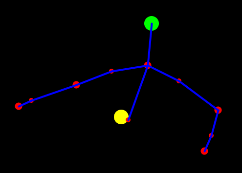 深度表示も魅力ですが、今回はリアルタイムのデータ入力をしたったので骨格を表示してみました。