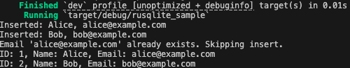 RustでSQLiteを扱うためのライブラリ、Rusqliteを試してみました。
