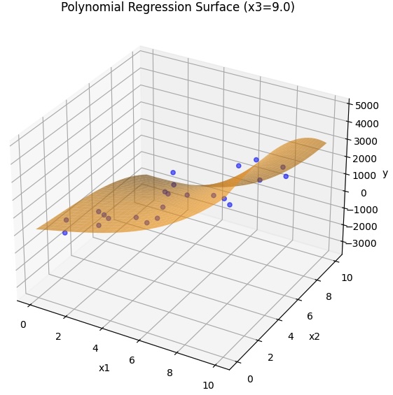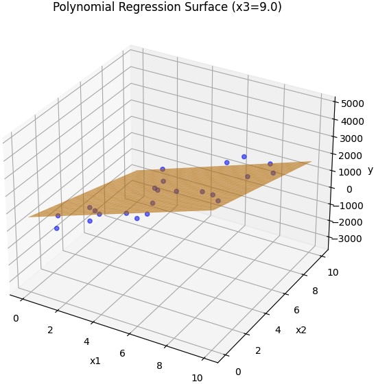3つの変数から導かれる結果について、多項式回帰モデルを使って見える化をしてみました。