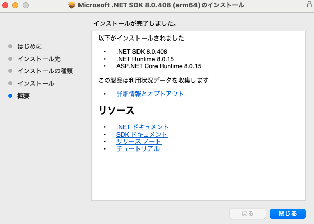 dotnet-sdk-8.0.408-osx-arm64.pkg (205,144,863 バイト)