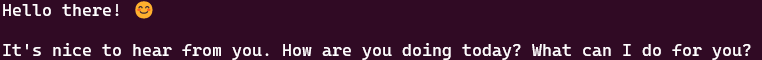 from langchain_openai import ChatOpenAI llm = ChatOpenAI(base_url="http://192.168.0.xxx:1234/v1", api_key="not-needed", temperature=0.7) text = "hello" print(llm.invoke(text).content) |
