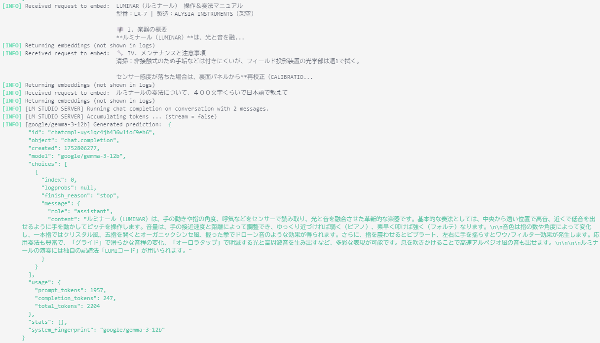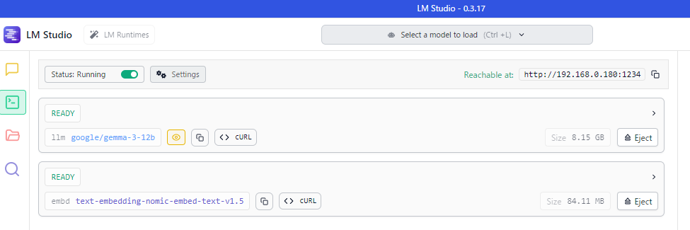 エンベディングモデルと、言語モデルと二つLM Studioから得ています。