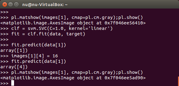 data[1]を予測すると、array([1]) つまり1と判定しました。