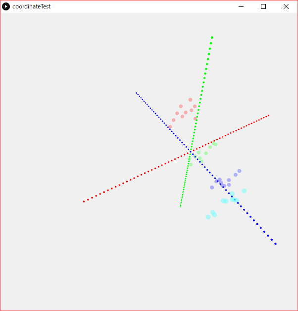 ただ2Dの拡張のような3Dであるため、座標の感覚がつかみづらく感じました。そこで空間を把握するため3D座標軸とデータをプロットしてみました。(カメラ使用しない)