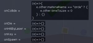空中に配置されている10個のBoxにCircleが衝突するとそれぞれのBoxに設定された値を出力します。