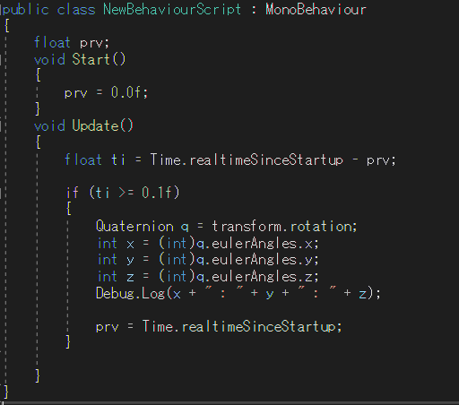 状態を知るため、Cube2の角度を取得しました。