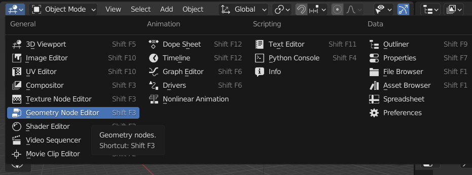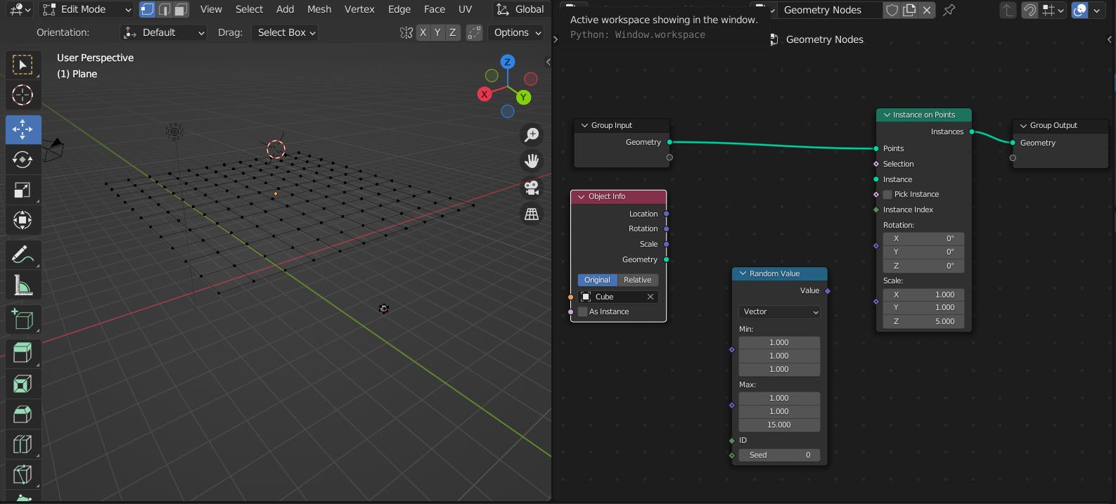 ジオメトリーノードというビジュアルプログラミング環境がBlenderにあるということをYouTubeを見ていて知りました。
