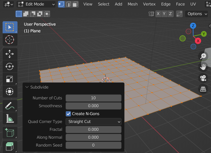 Planeの表示(Shft+Aをタイプして選択、S X 5, S Y 5 で拡大)