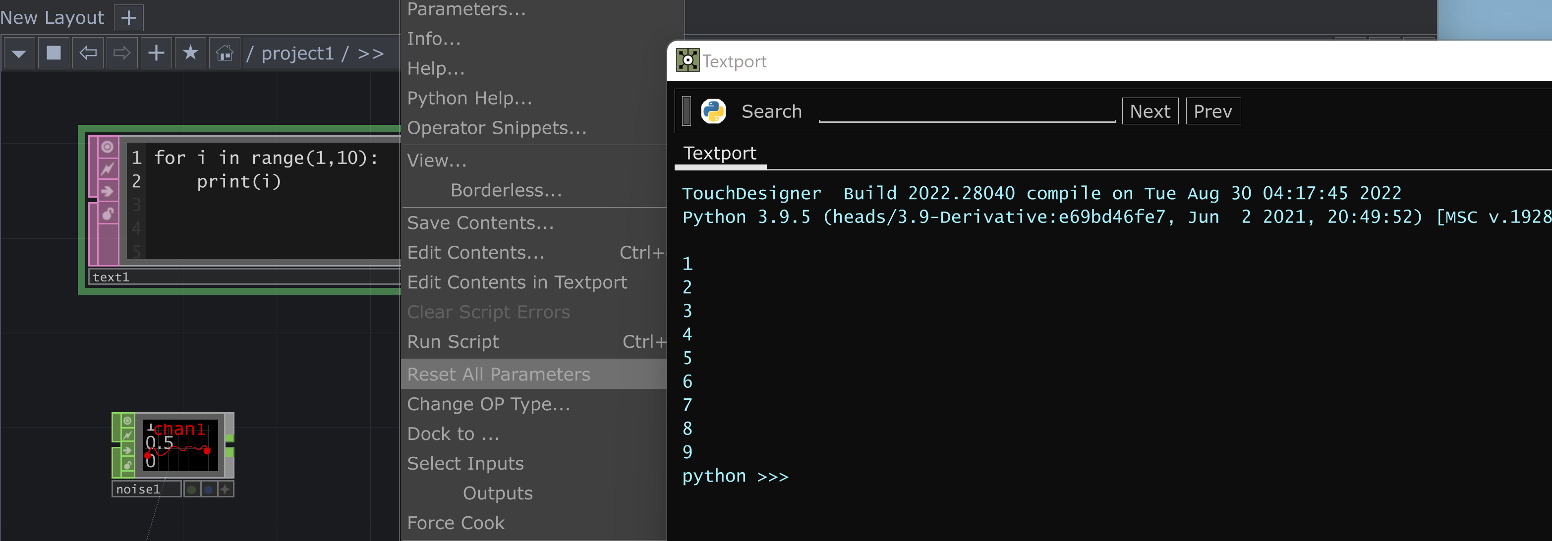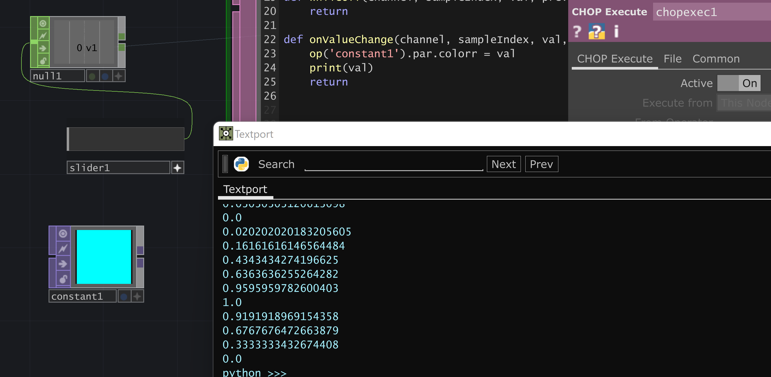 Pythonの出力は、このようなWindowに出力されます。次に最初にやってみたかったPythonプログラムのIN/OUTに外部モジュールをつなぐことをしてみました。