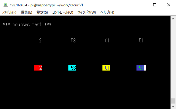 ビルド) cc -o ncurtest ncurtest.c -lncurses