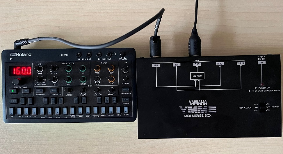使用デバイス(Roland S-1。MIDIのIN/OUTはつなぎなおし。PCとはRoland UM-ONE)