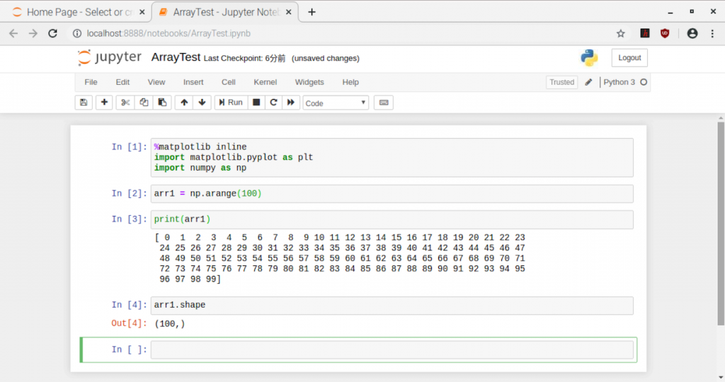 ここではRaspberryPiにインストールしたものを使い、簡単な配列操作をしてみました。