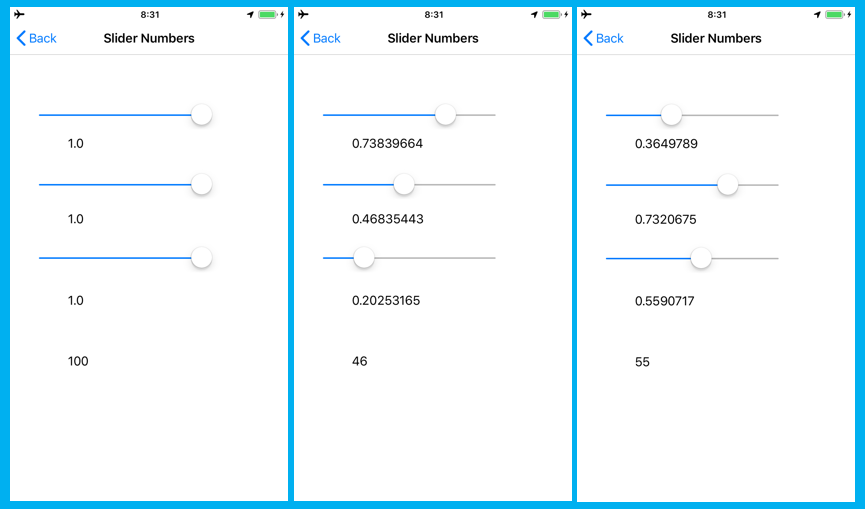 プログラムは、3つのスライダの値の平均値を表示するものです。