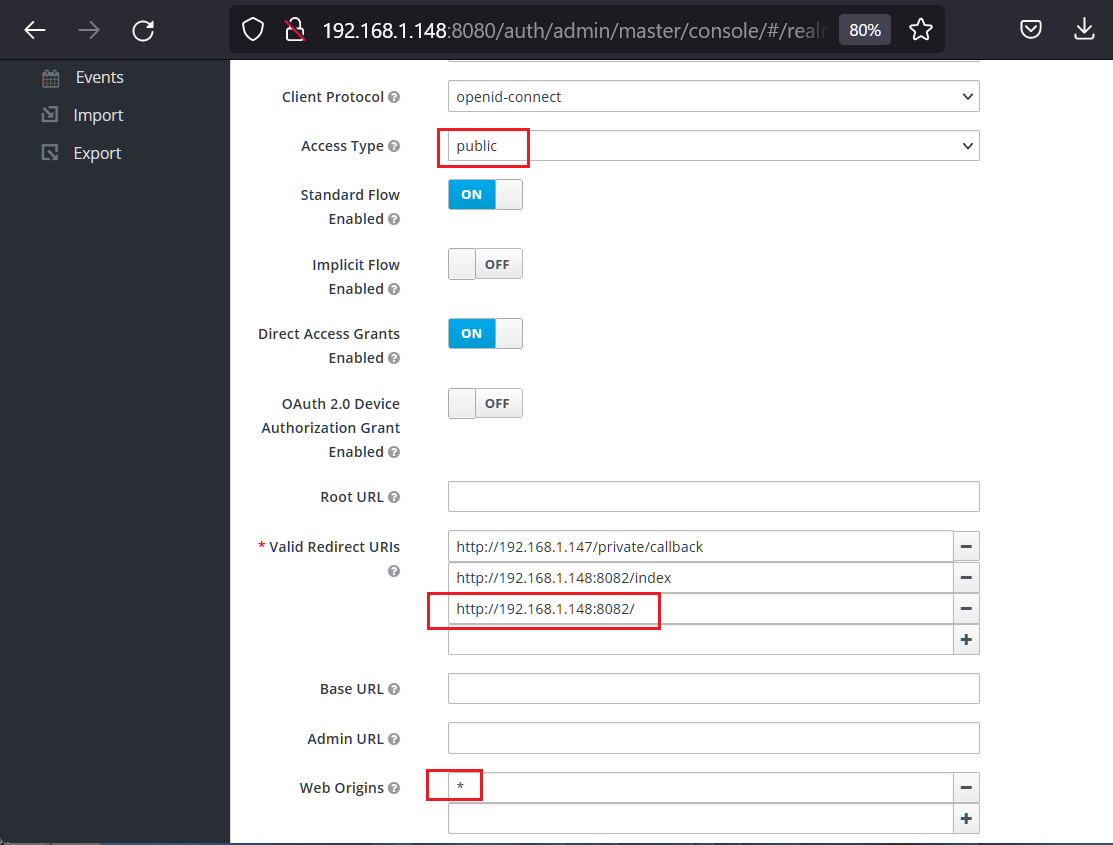 ※v21は、http://192.168.1.148:8080/auth/ を http://192.168.1.172:8080/ に