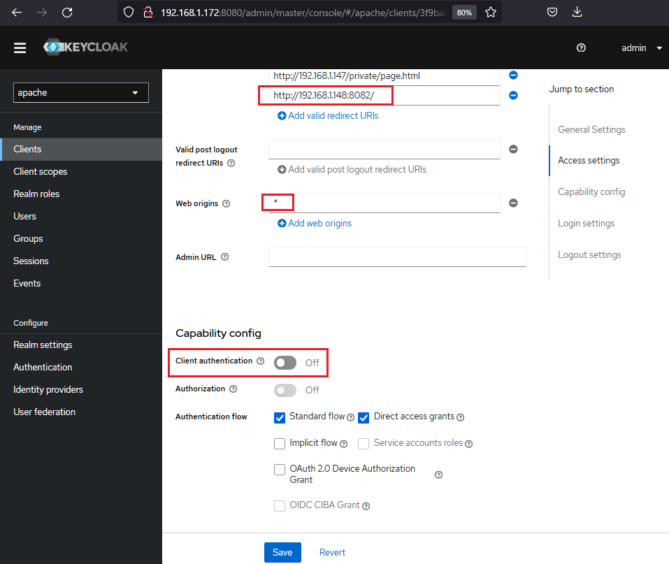 Keycloak v15, node.js App/Ubuntu 20.04 / 192.168.1.148