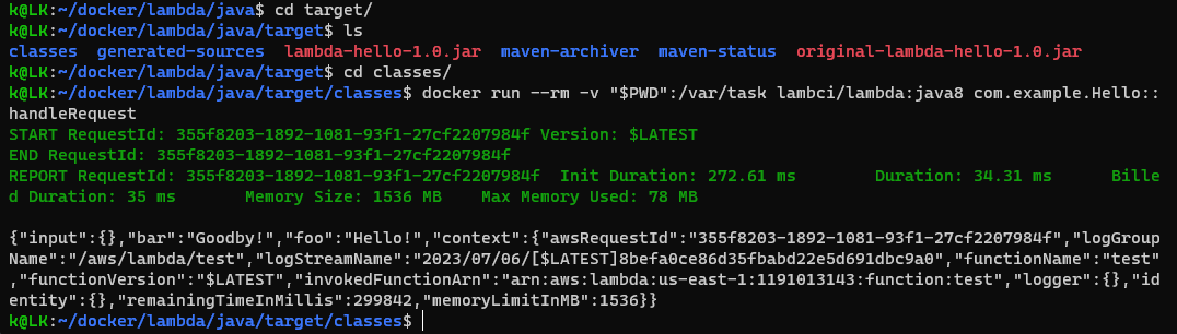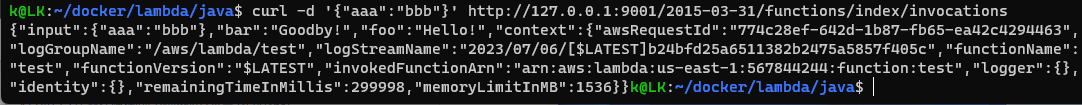 package com.example; import com.amazonaws.services.lambda.runtime.Context; import com.amazonaws.services.lambda.runtime.RequestHandler; import java.util.HashMap; import java.util.Map; public class Hello implements RequestHandler<Map<String, Object>, Map<String, Object>> { @Override public Map<String, Object> handleRequest(Map<String, Object> input, Context context) { Map<String, Object> output = new HashMap<>(); output.put("foo", "Hello!"); output.put("bar", "Goodby!"); output.put("input", input); output.put("context", context); return output; } } |