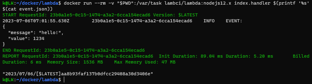 AWSのLambda関数をローカル環境で動かすlambci/lambdaというDockerイメージを見つけましたので、試してみました。