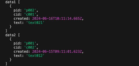 import { PrismaClient } from '@prisma/client' import dayjs from 'dayjs' import React from 'react' import utc from 'dayjs/plugin/utc' import timezone from 'dayjs/plugin/timezone' dayjs.extend(utc) dayjs.extend(timezone) const tz = 'Asia/Tokyo' const prisma = new PrismaClient() const page = async () => { const data1 = await prisma.comments.findMany({ where:{ pid: 'p002', created: { gte: new Date('2024-06-16T09:00:00.000Z'), lt: new Date('2024-06-16T11:00:00.000Z') } } }) console.log('data1', data1) const now = dayjs().utc() //const now = dayjs().tz(tz) const data2 = await prisma.comments.findMany({ where:{ created: { gte: now.startOf('day').toISOString(), lt: now.endOf('day').toISOString(), } } }) console.log('data2', data2) await prisma.comments.upsert({ where:{ pid_cid:{ pid: 'p001', cid: 'c001' } }, update:{ text: 'update01' }, create:{ pid: 'p001', cid: 'c001', text: 'create01' } }) return ( <div>page</div> ) } export default page |