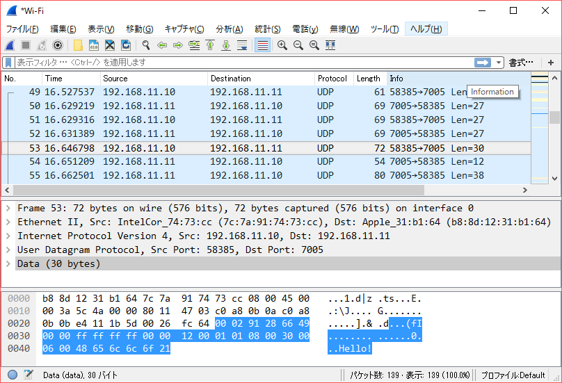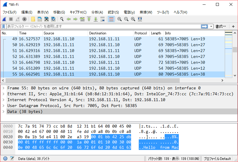 通信の内容が気になったので、MacとWindows間て通信したものをキャプチャしてみました。