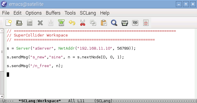 s_newで音が再生され、n_freeで停止します。(これもLiveCodingの要領で一行ずつ実行します。こちはらCtl-Cを二回押下することで実行)