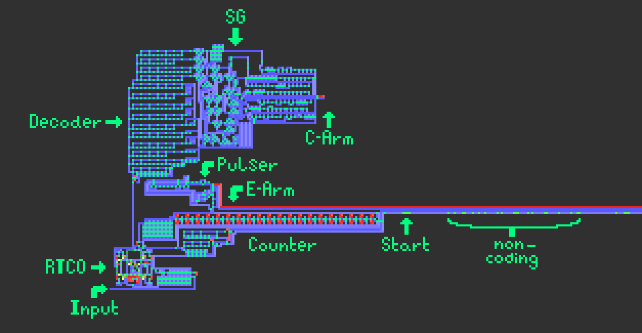 ルールJvN29のカウンターのデモを二段にしたものを作ってみました。