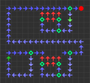 伝播していくと、ブランクが赤丸になり順に青矢印に変化してきます。この数がカウンタの表現になります。