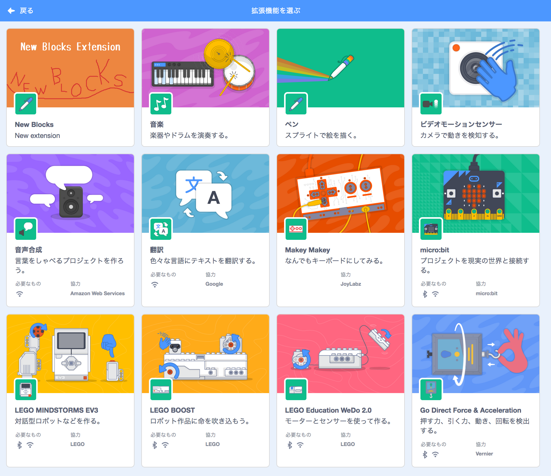 ... import newblocksImage from './newblocks/Newblocks.png'; import newblocksInsetImage from './newblocks/pen-small.svg'; export default [ { name: ( <FormattedMessage defaultMessage="New Blocks" description="Name for the 'New Blocks' extension" id="gui.extension.newblocks.name" /> ), extensionId: 'newblocks', iconURL: newblocksImage, insetIconURL: newblocksInsetImage, description: ( <FormattedMessage defaultMessage="New extension" description="Description for the 'New Blocks' extension" id="gui.extension.newblocks.description" /> ), featured: true }, ... |