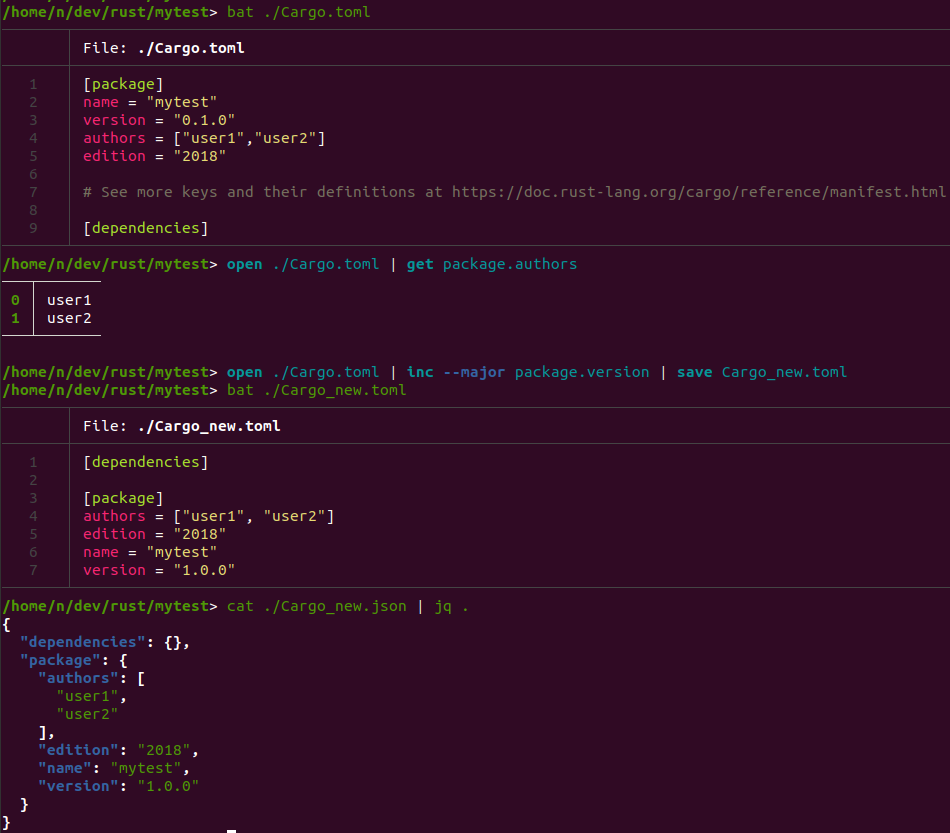 “open Cargo_new.json | save Cargo_new2.toml” で元のCargo_new.tomlと同じファイルになります。