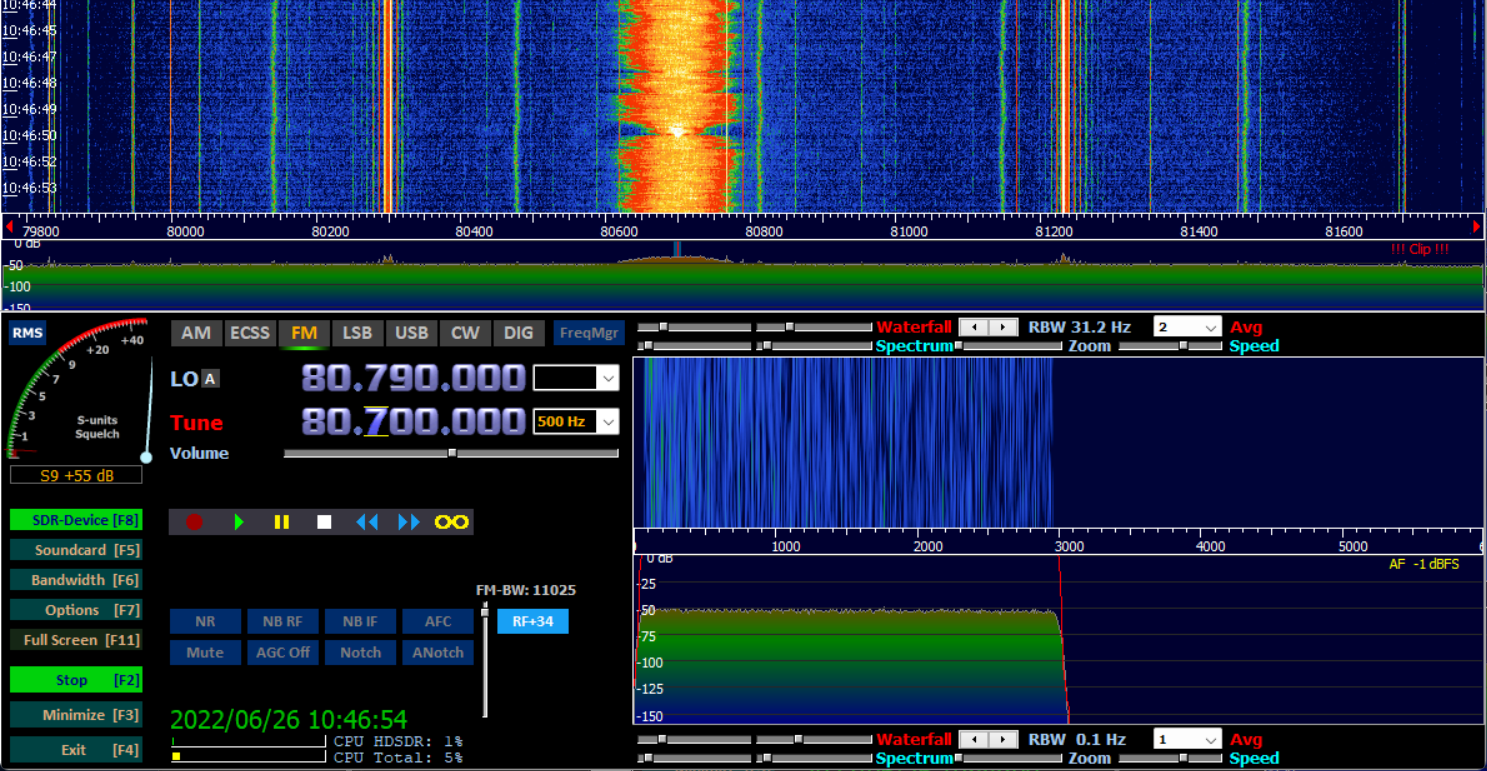 無料のソフトウェアがいくつかありスペクトル表示画面が、まさに今の時代の無線が楽しめます。(HDSDR使用)